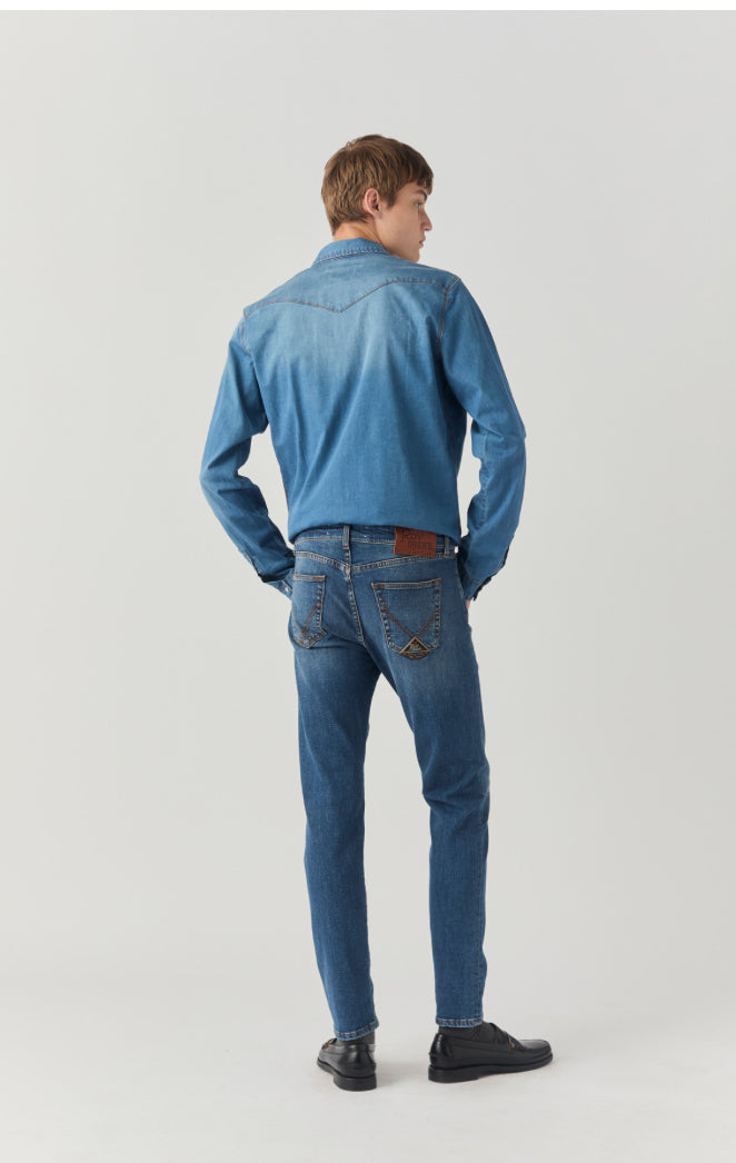 - Jeans in denim con lavaggio scuro.