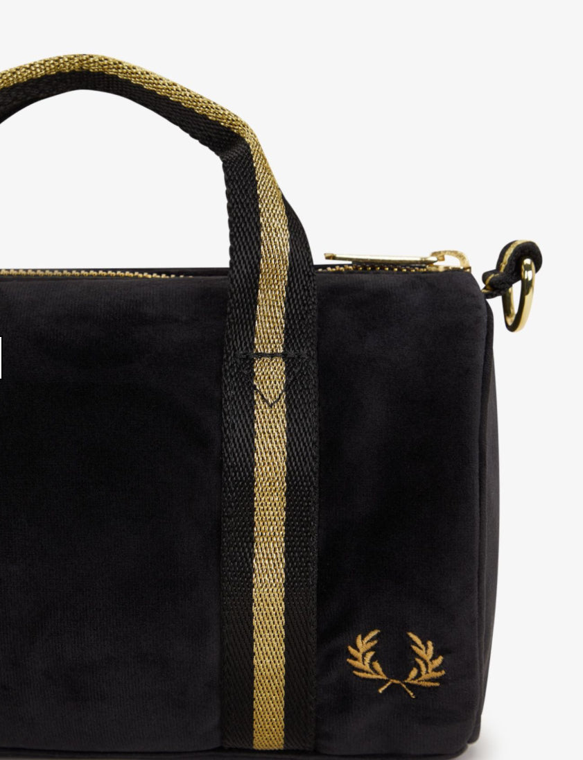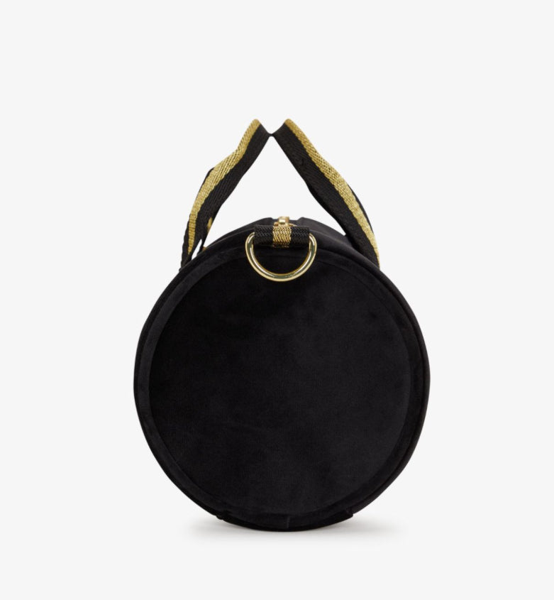 Non giudicare la mini borsa da palestra dalle sue dimensioni. Realizzata in un raffinato tessuto velour con dettagli ricamati in oro, questo capo irrinunciabile del guardaroba rimarrà il tuo alleato indipendentemente da quanto duri la serata.