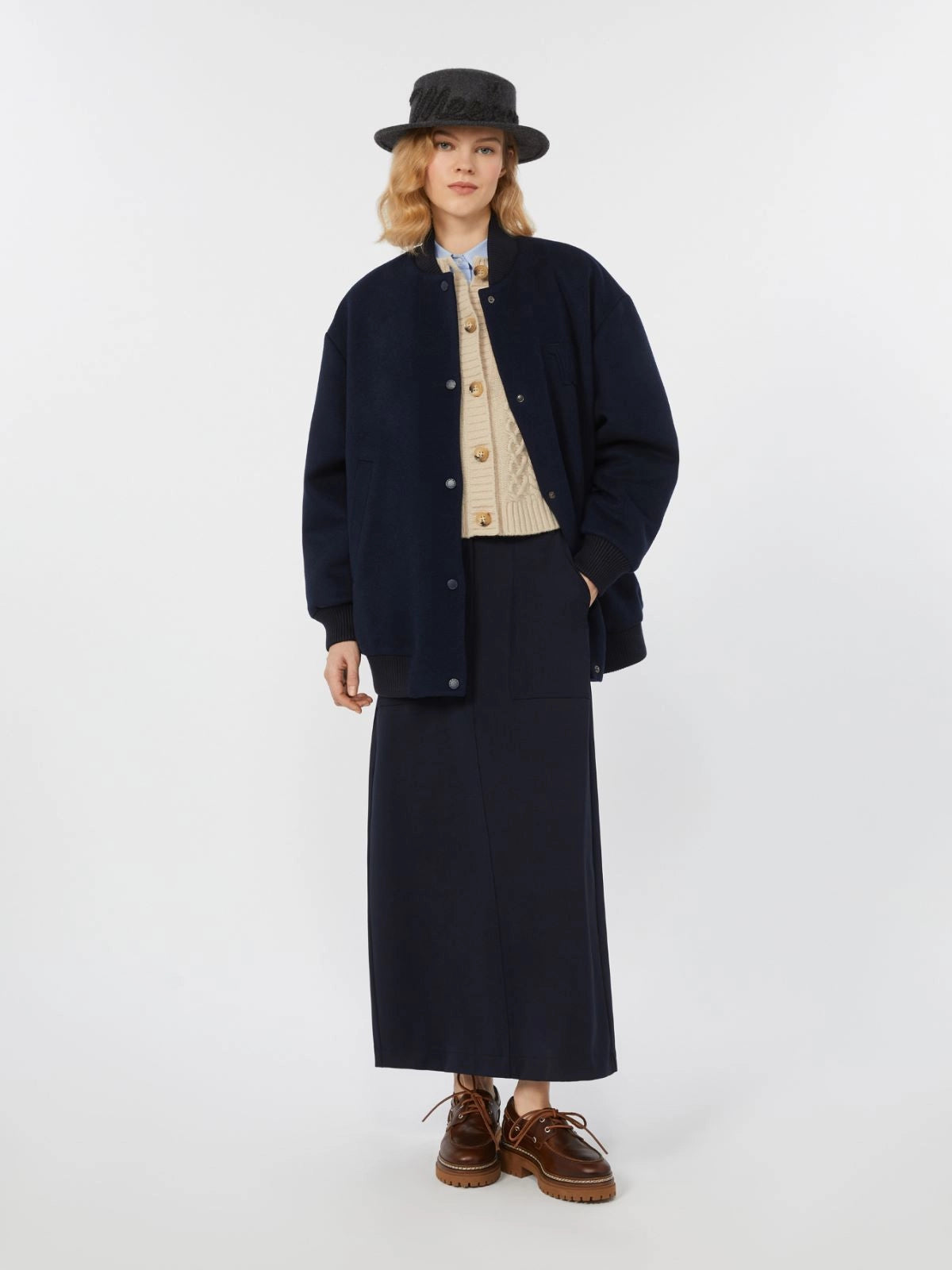 Bomber dalla silhouette allungata leggermente oversize, con interno trapuntato e imbottito in Luxepad Ultra Fine Insulating Technology Camel-Silk Blend Edition.
