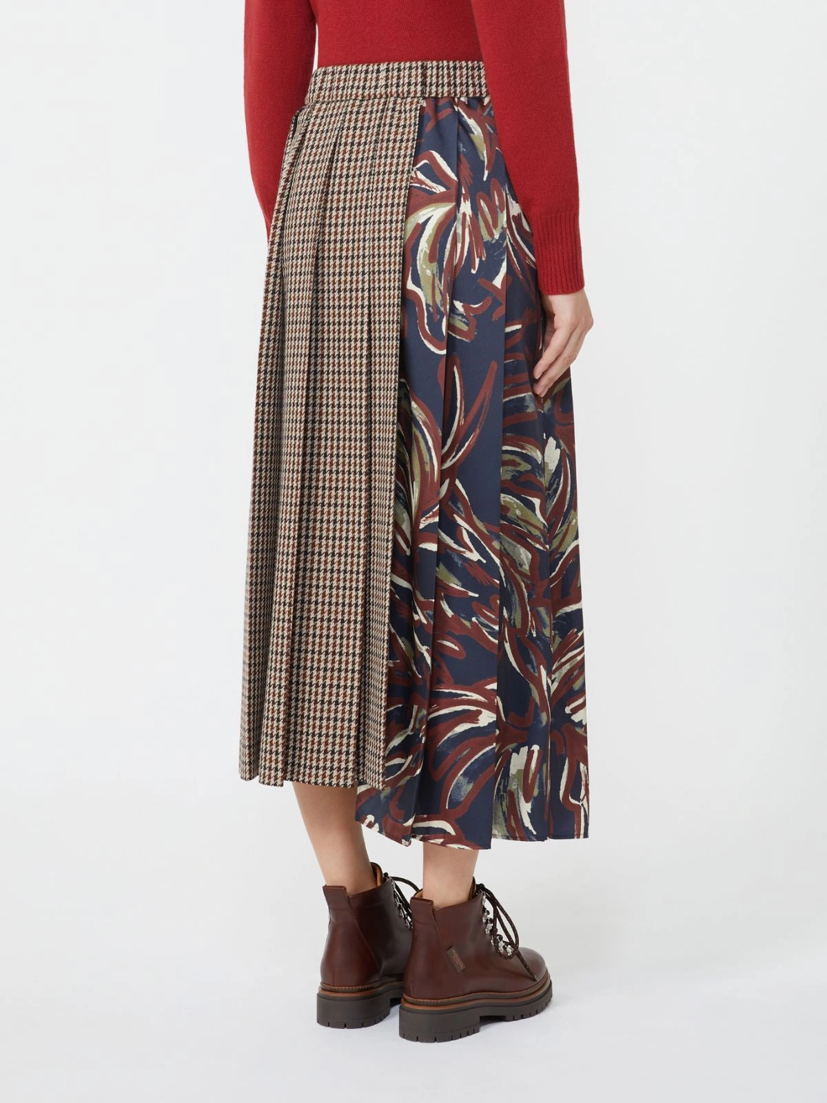 Gonna midi caratterizzata un gioco di pieghe plissé e pieghe montate che donando movimento.