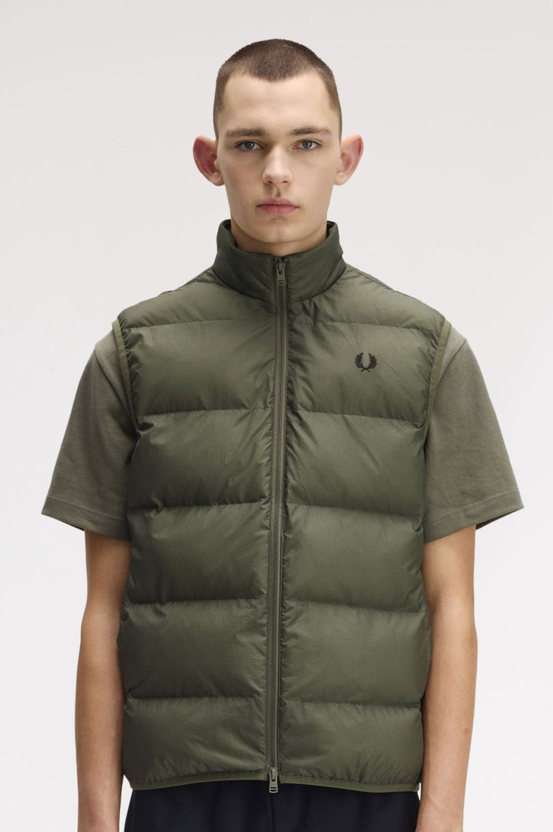 Un capospalla smanicato nel classico stile trapuntato del piumino britannico.
