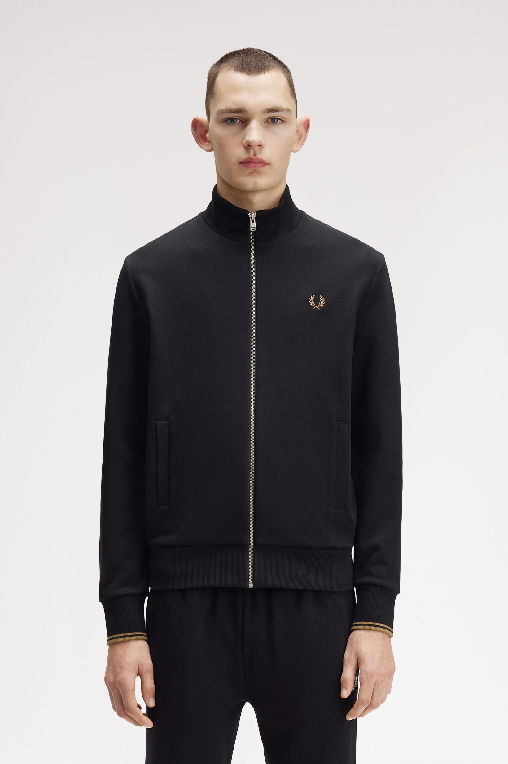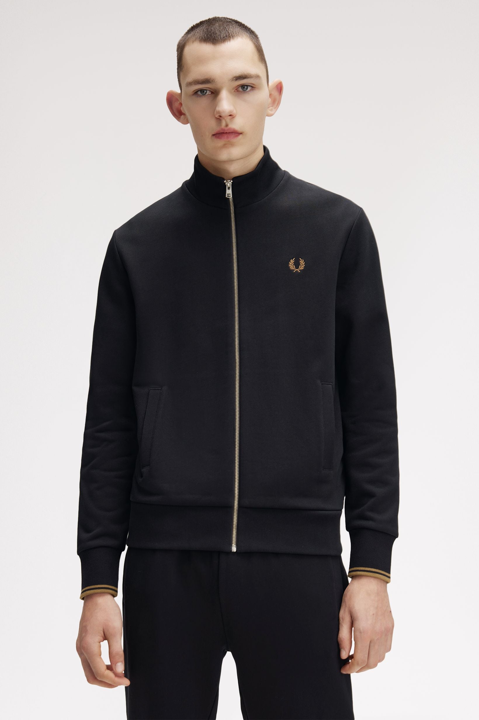 Capo indispensabile per gli allenamenti invernali, la felpa in cotone è un classico intramontabile. Il nostro modello girocollo presenta discreti dettagli Fred Perry, chiusura con zip intera, doppia riga sui polsini e l'immancabile corona d'alloro ricamata sul petto. Ideale per un abbigliamento a strati.