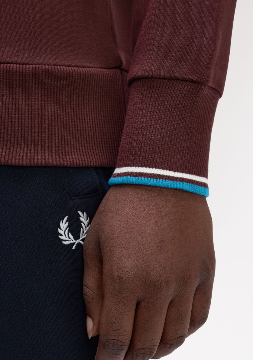Indossata dai giocatori durante gli allenamenti invernali, la felpa in cotone è un classico dello sportswear. La nostra è rifinita con discreti dettagli Fred Perry e doppia riga sui polsini.