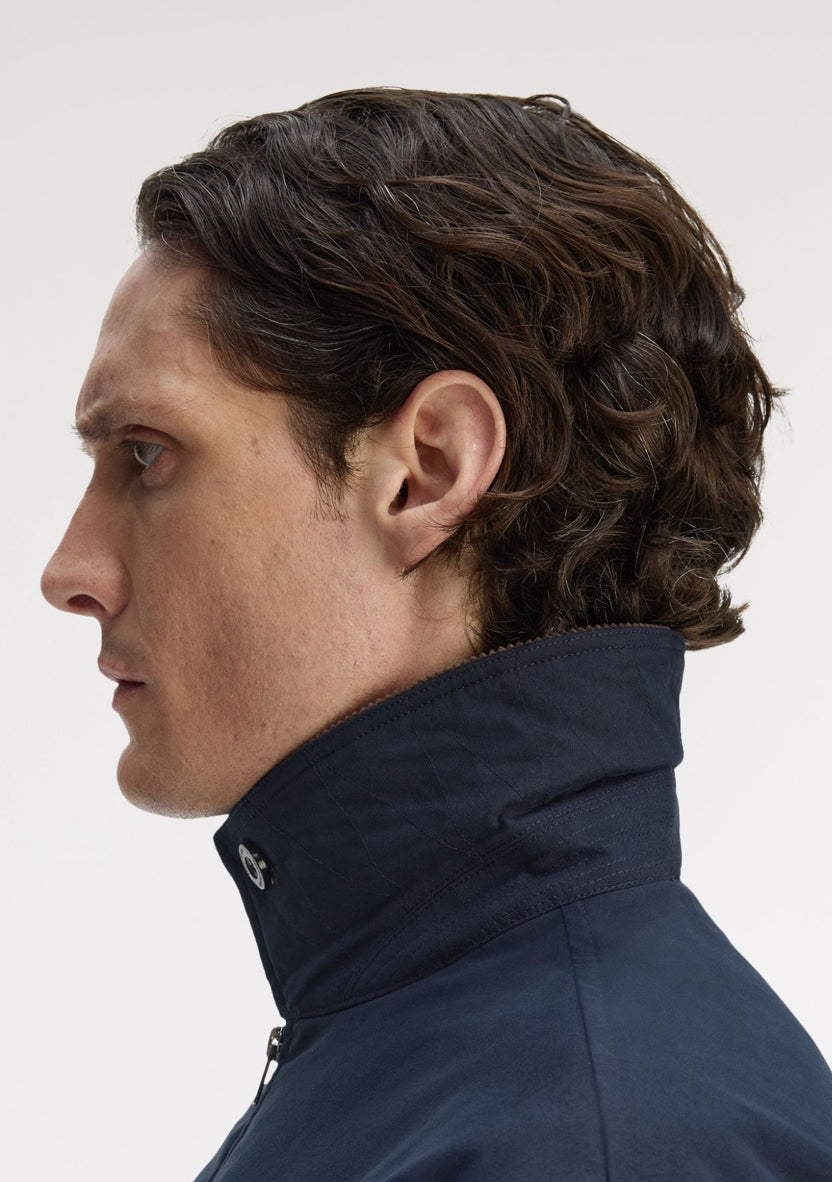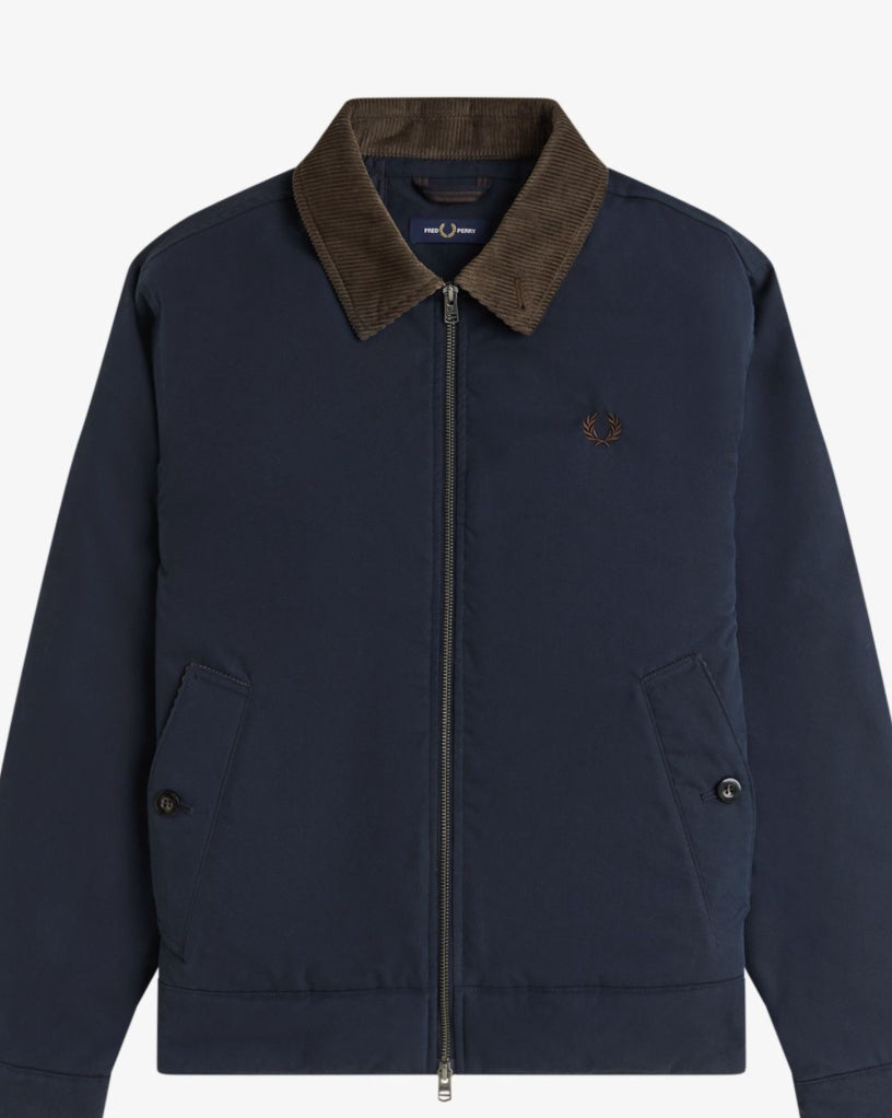Questa versione è realizzata in misto cotone e poliestere riciclato per garantire una maggiore resistenza. Presenta una fodera in twill lucido con leggera imbottitura per offrire un calore ottimale, un colletto in velluto a coste di cotone e maniche foderate in velluto a coste per garantire una vestibilità aderente. Una combinazione di stili senza tempo, con la corona d'alloro ricamata che funge da trait d'union perfetto. Progettata per durare nel tempo.