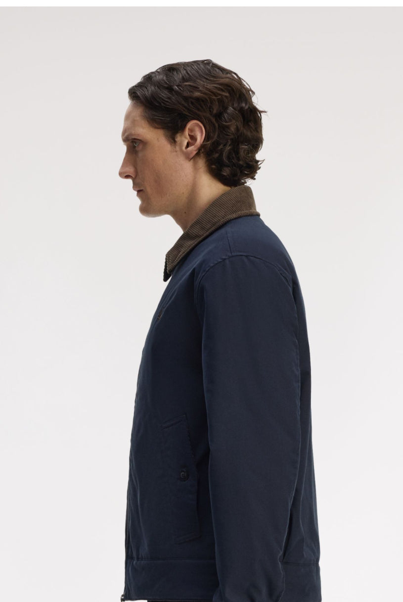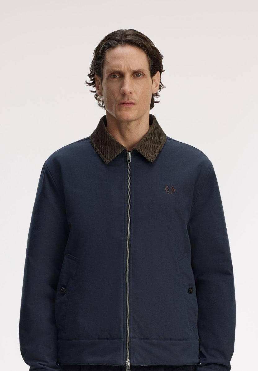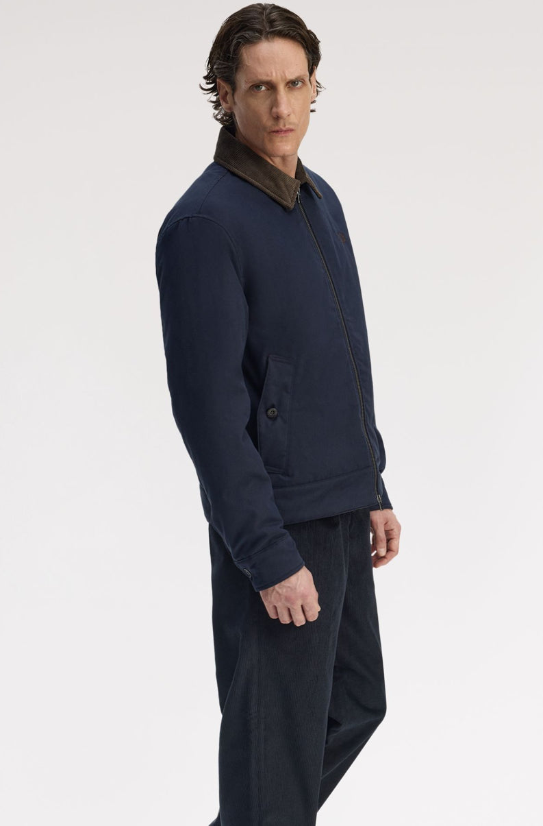 Una giacca Caban lunga fino ai fianchi con colletto in velluto a coste: un capospalla elegante con un bordo robusto e affidabile.
