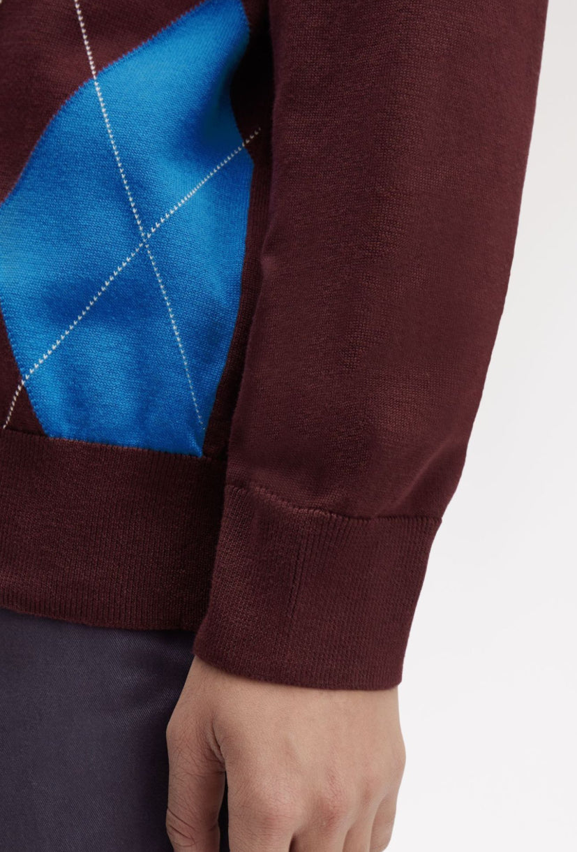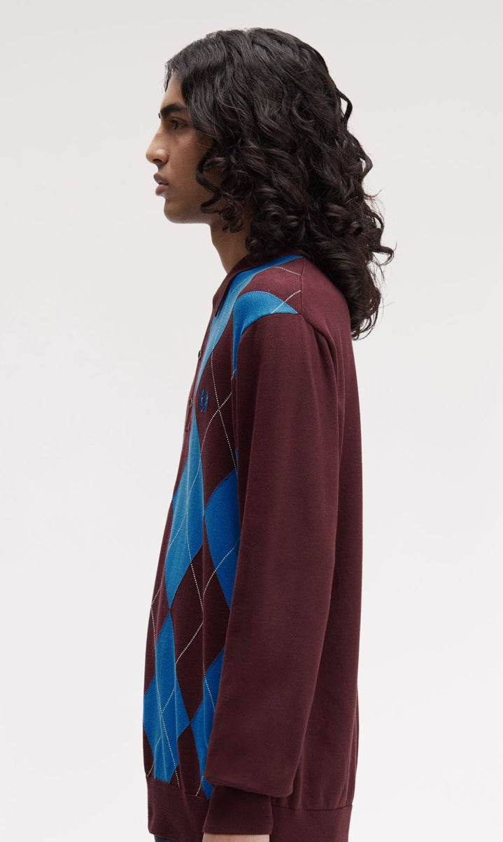 La nostra polo in maglia di puro cotone pettinato, realizzata con intarsio a losanghe lavorata a maglia secondo la filosofia dello "slow-knitting".
