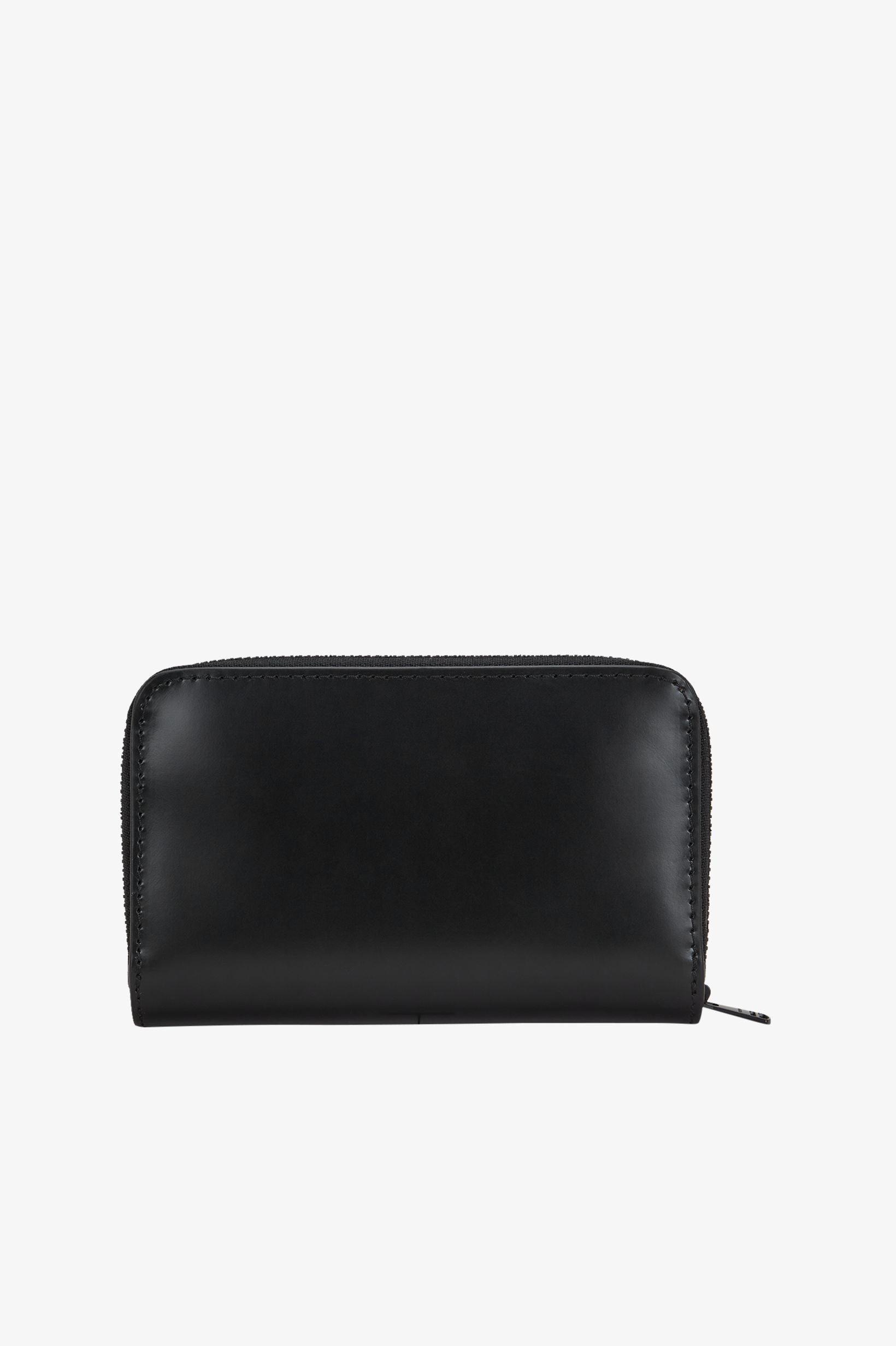 Pelle di vitello / Portamonete con zip /Scomparti per carte / Ricamo in nero e oro con cuori di Amy / Logo con corona d'alloro laminato oro