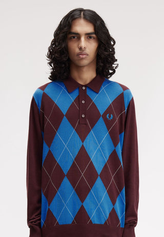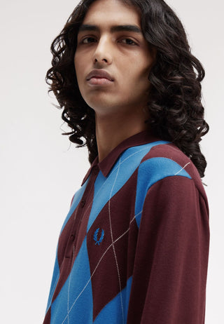 Polo in maglia a maniche lunghe a losanghe