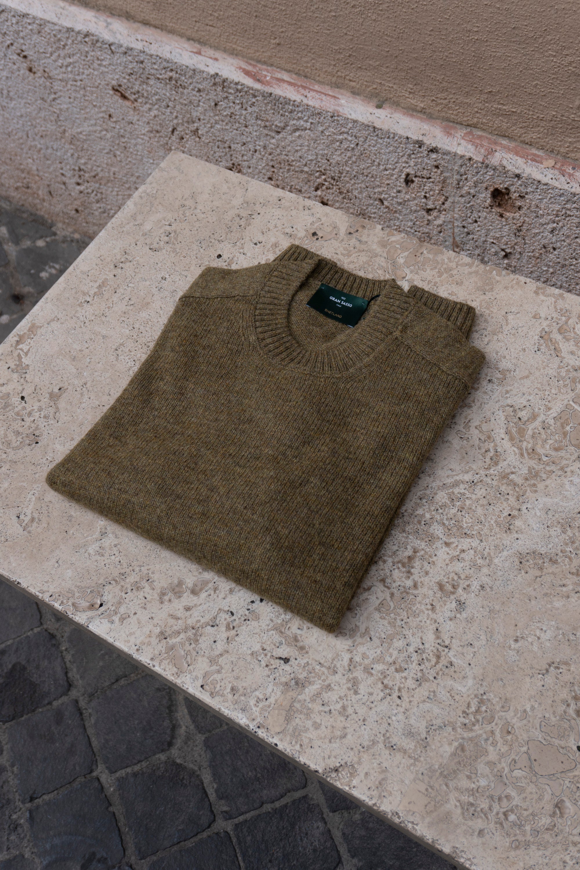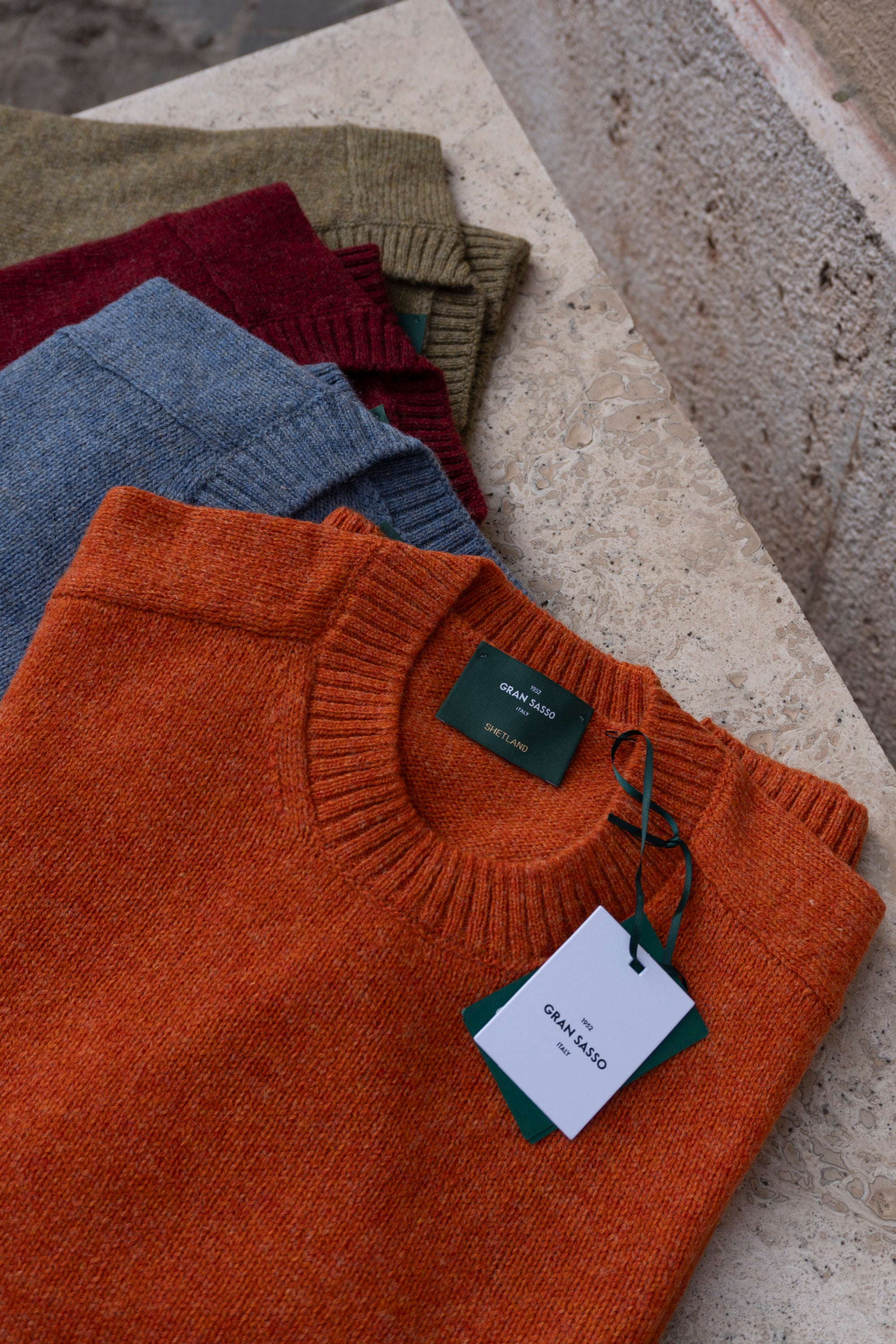 Maglia girocollo realizzata in filato di pura lana Shetland, noto per la sua resistenza naturale, la texture leggermente rustica e il calore eccezionale. Questo tipo di lana, proveniente dalle isole Shetland in Scozia, è apprezzata per la sua capacità di isolare dal freddo pur mantenendo una buona traspirabilità. Il risultato è un capo dal carattere autentico e robusto, ideale per chi cerca uno stile classico con una forte identità materica. Perfetto da indossare da solo o abbinato a giacche invernali per un look casual ma ricercato. Regular fit. Prodotto in Italia.