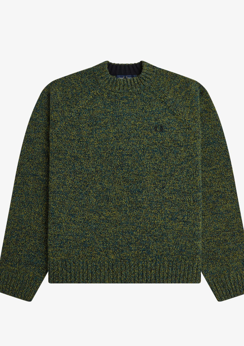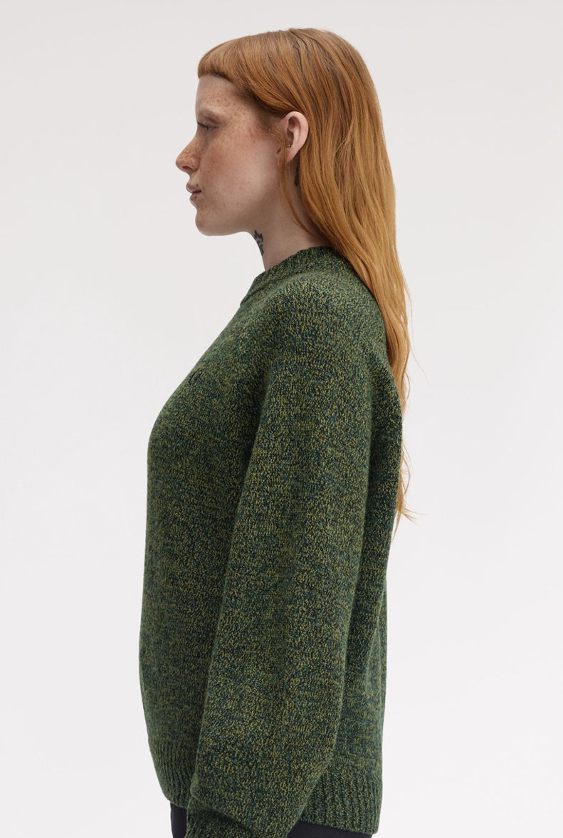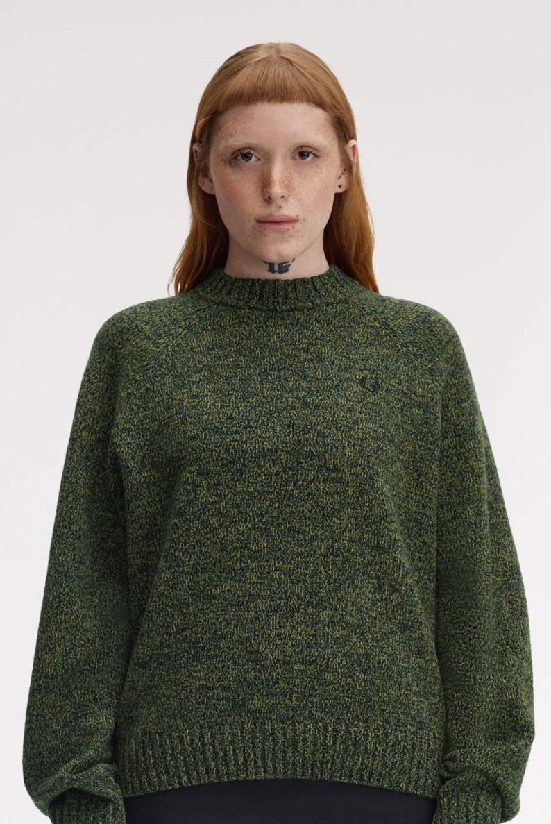 Un maglione mélange con texture in maglia di misto lana certificata RWS.