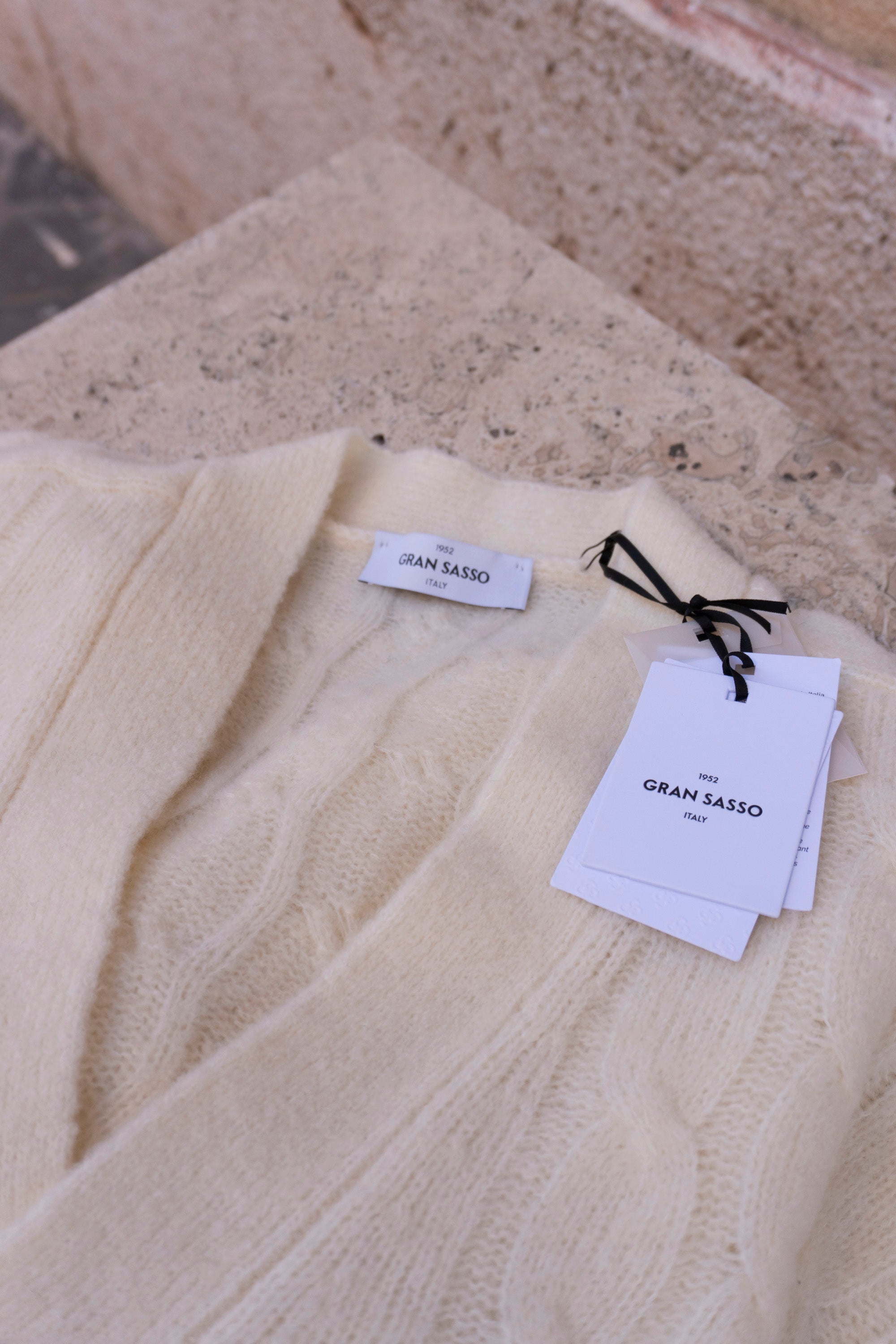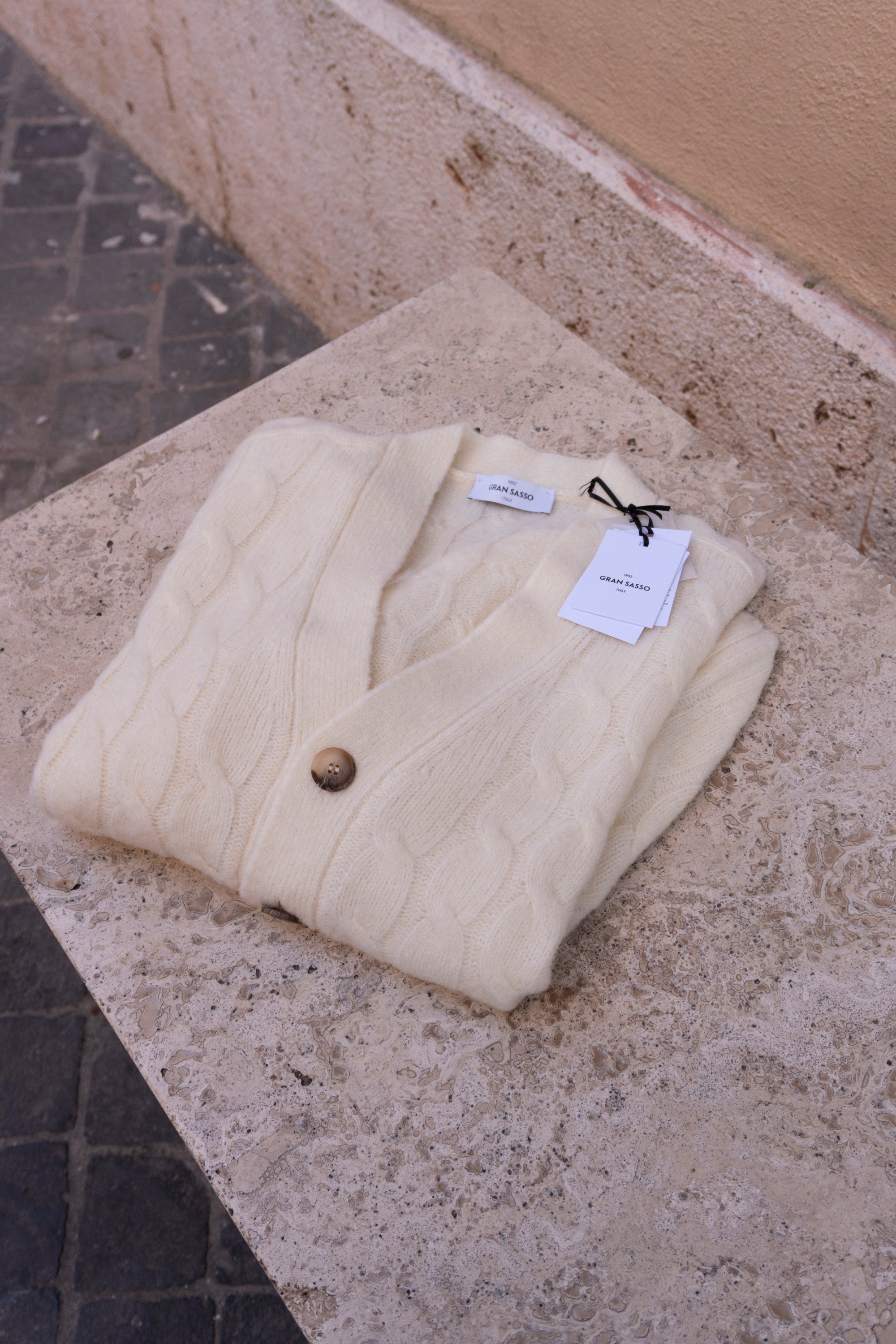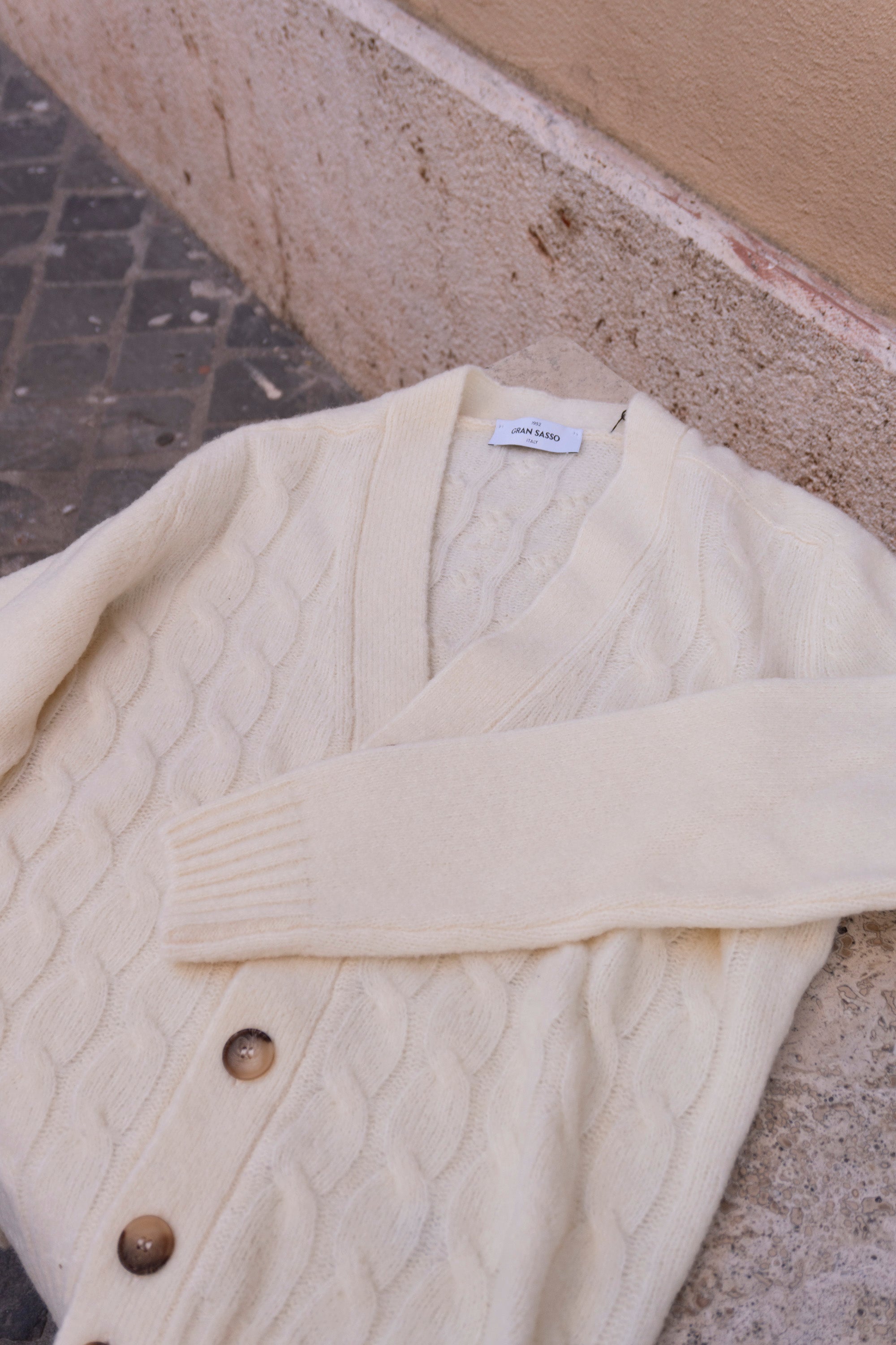 Bellissimo cardigan con lavorazione a trecce,indossato sotto una giacca diventa elegantissimo.