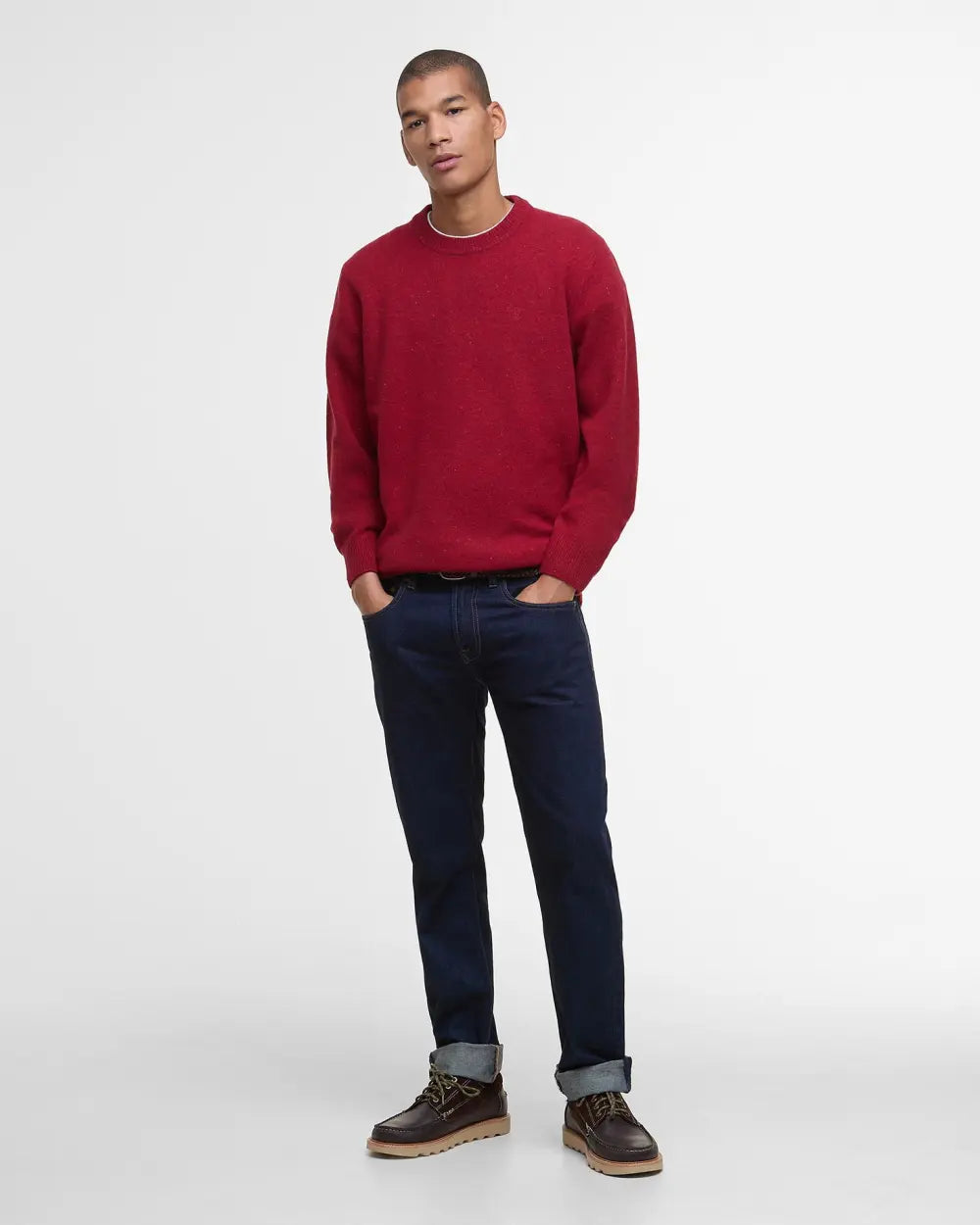 Classico immancabile nel guardaroba invernale, il maglione girocollo coniuga versatilità e stile senza tempo. Il modello Tainsbury di Barbour, in 100% lana, aggiunge un tocco esclusivo al tuo outfit. Realizzato in un tessuto delicatamente screziato che richiama il tweed e rifinito con dettagli a coste sottili sui polsini, sull'orlo e sul collo, questo capo discreto è la quintessenza della versatilità.