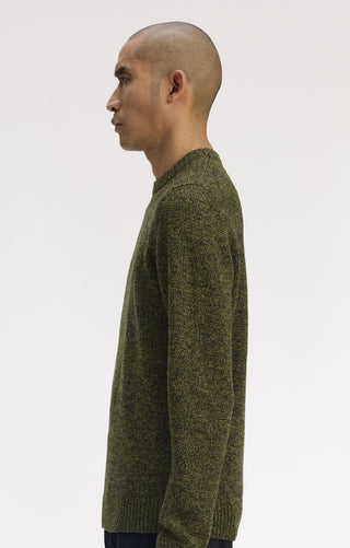 Maglione girocollo in pura lana Shetland con lavorazione a treccia
