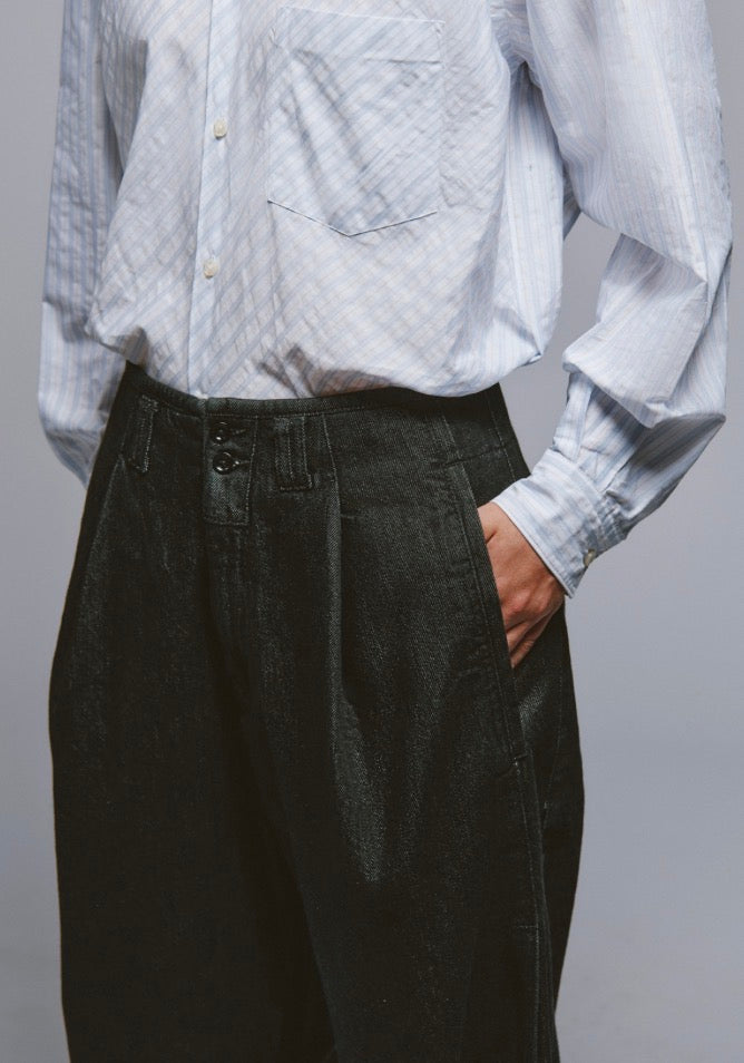 - Tasche laterali a filo e taschino sul retro con bottone.