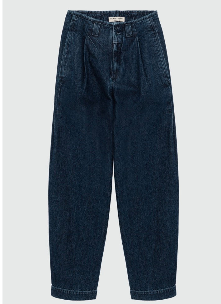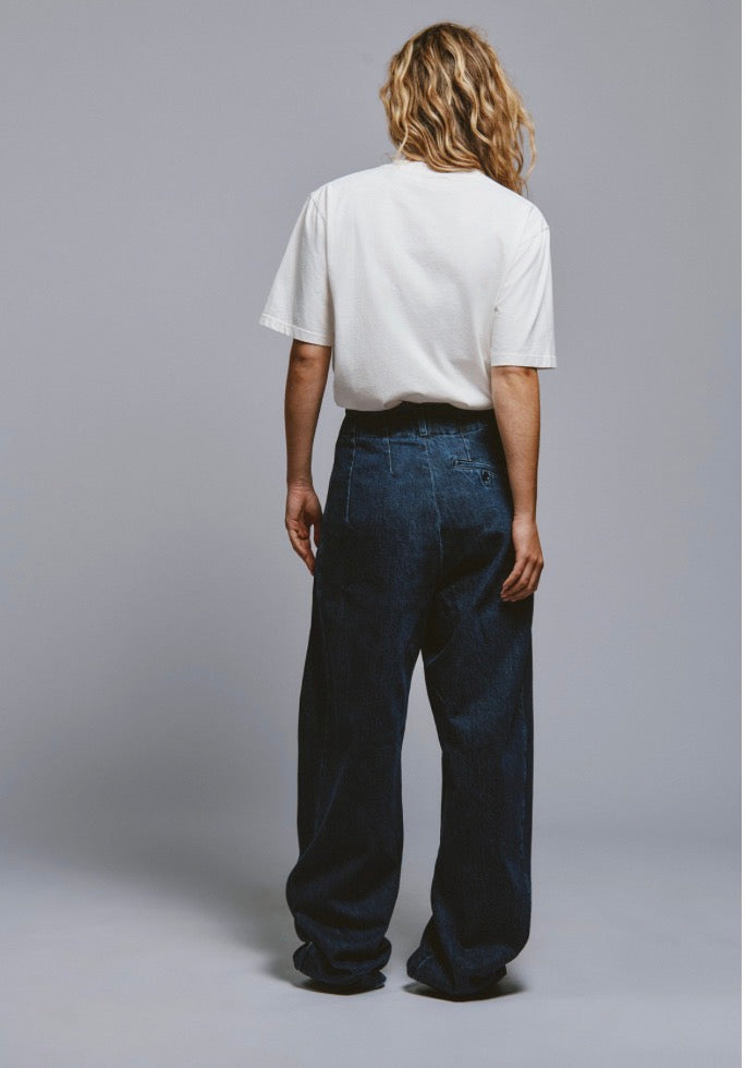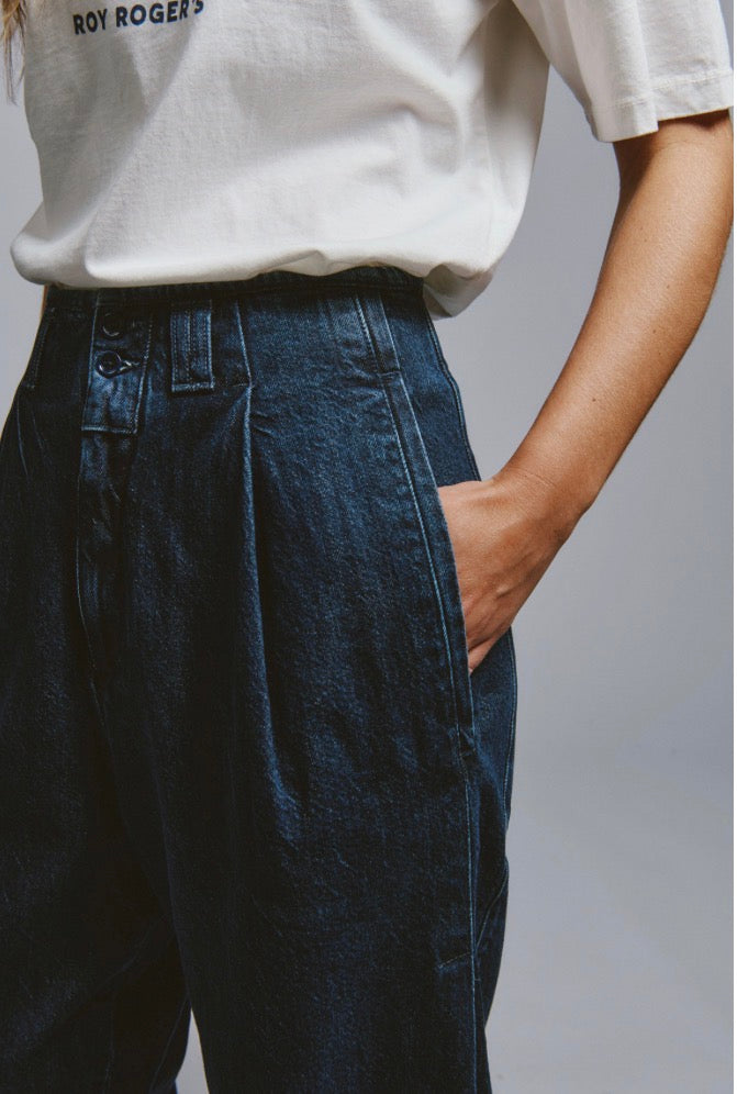 - Pantalone in denim mid stone con lavaggio scuro.