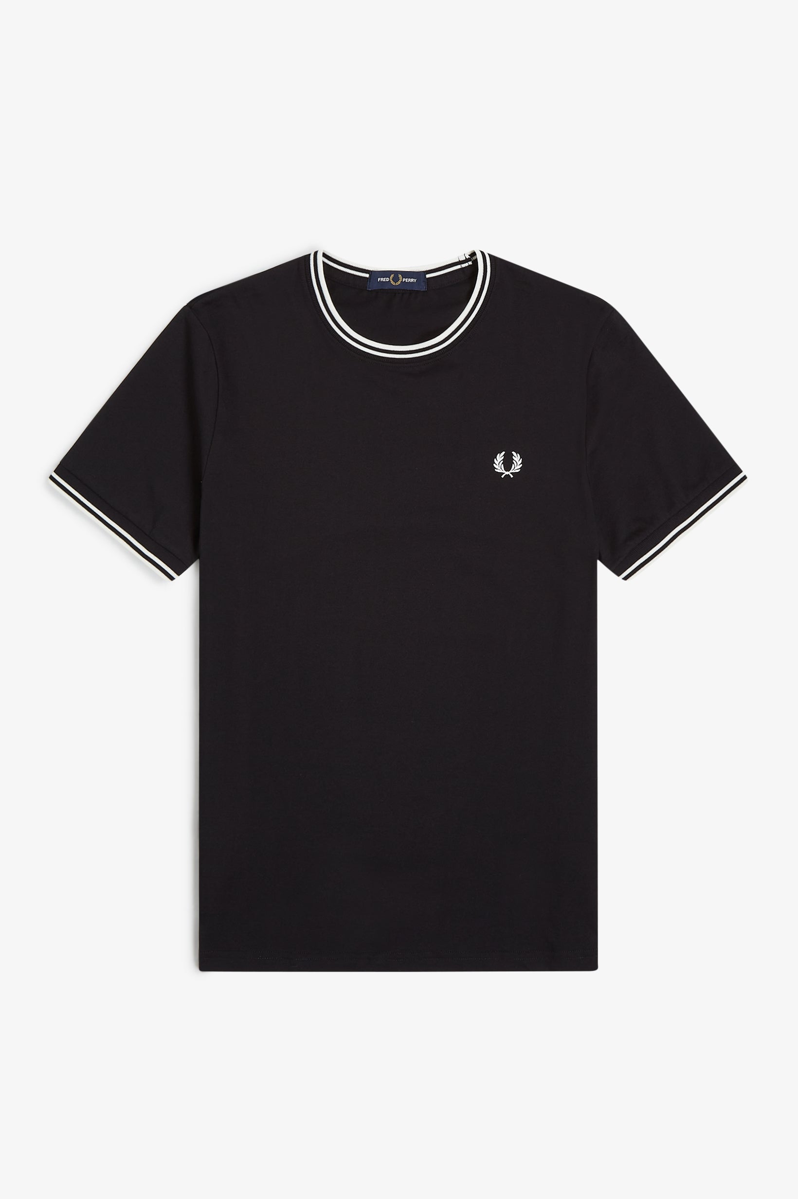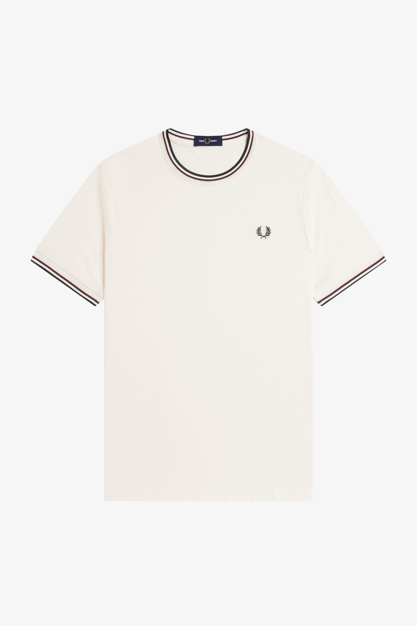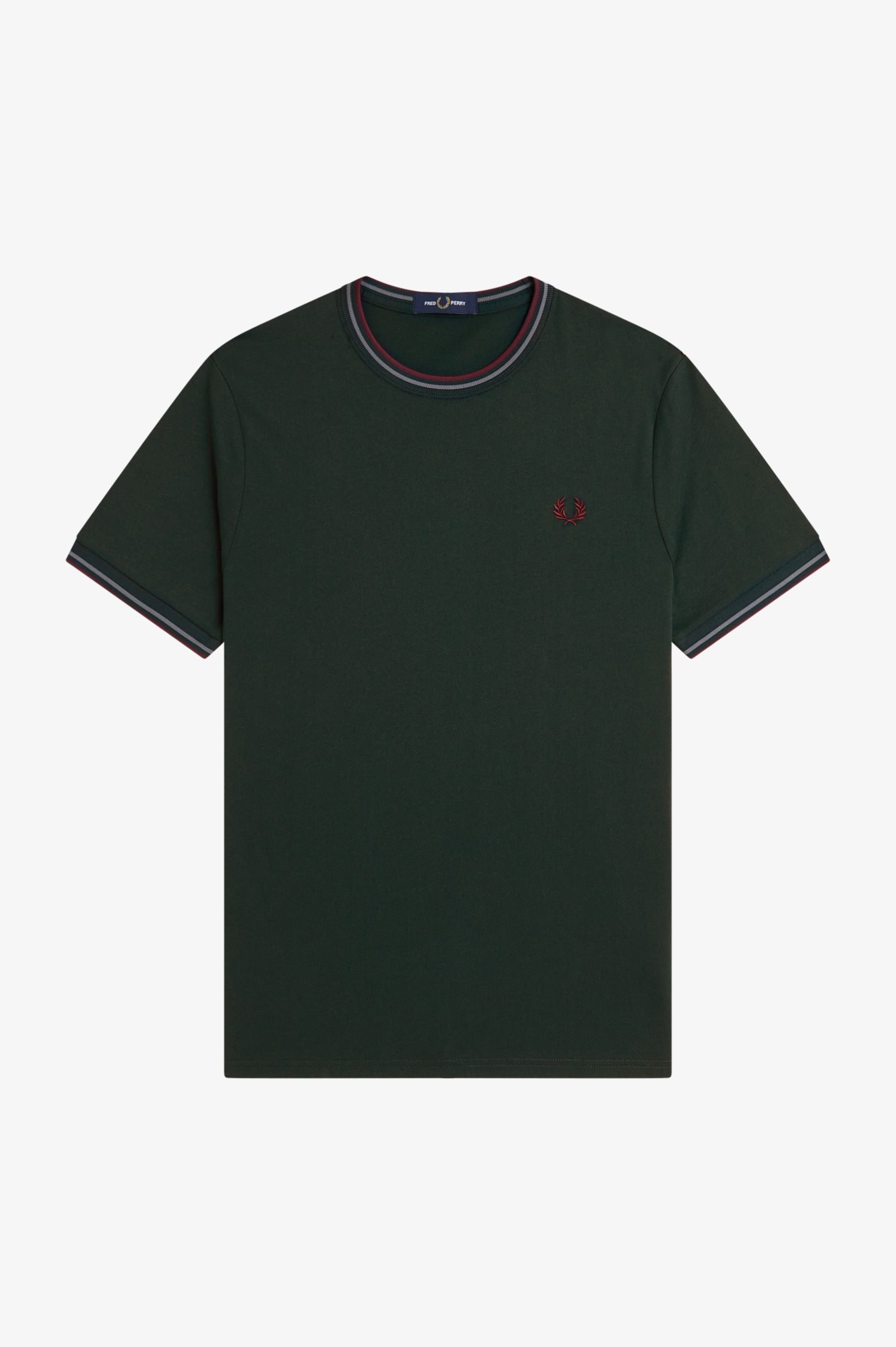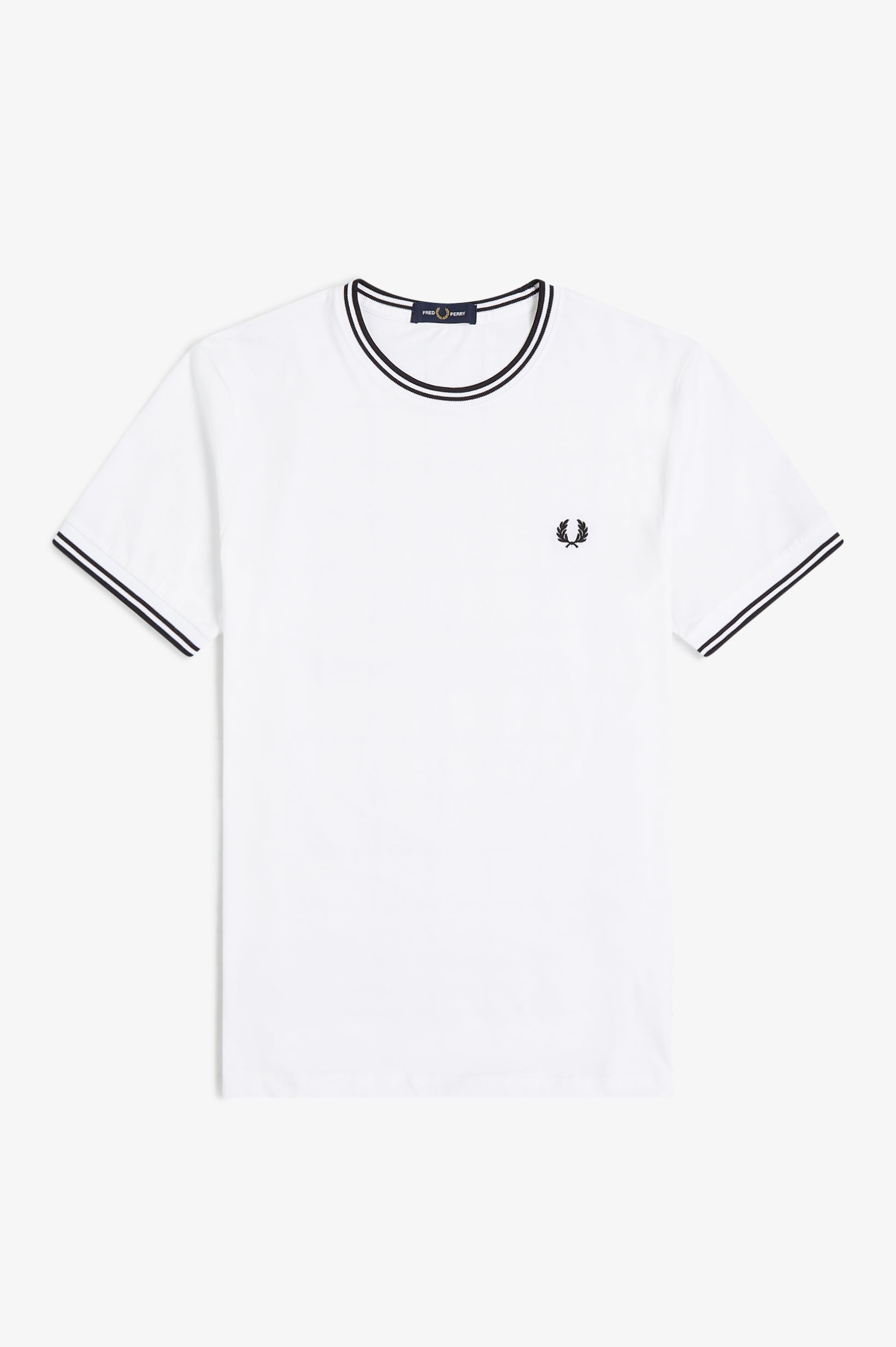 La leggenda narra che la nostra doppia riga sia nata quando un cliente del negozio londinese Lillywhites chiese che venissero aggiunti i colori della sua squadra di calcio alla polo da tennis tinta unita di Fred. Solo noi utilizziamo la riga con rapporto 5-4-4 ed è parte del nostro DNA. Con i nostri caratteristici dettagli, la nostra T-shirt girocollo sfoggia la doppia riga e la corona d'alloro ricamata in colore coordinato. Un classico Fred Perry.