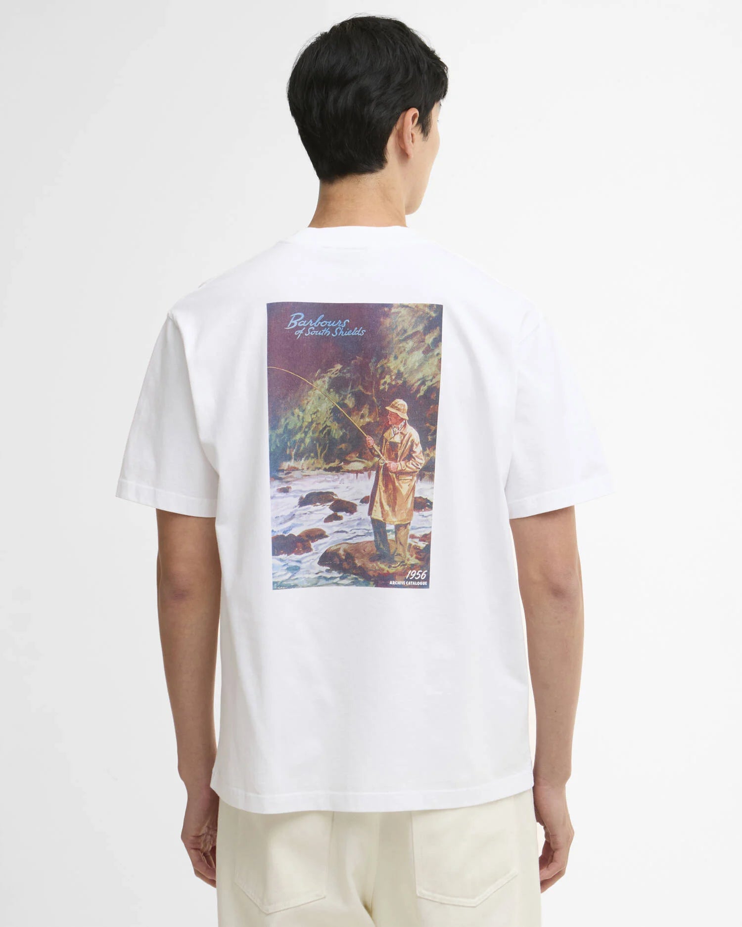 Sul petto, al centro: piccola stampa con logo Barbour. Sul retro: maxi-stampa vintage Barbour.