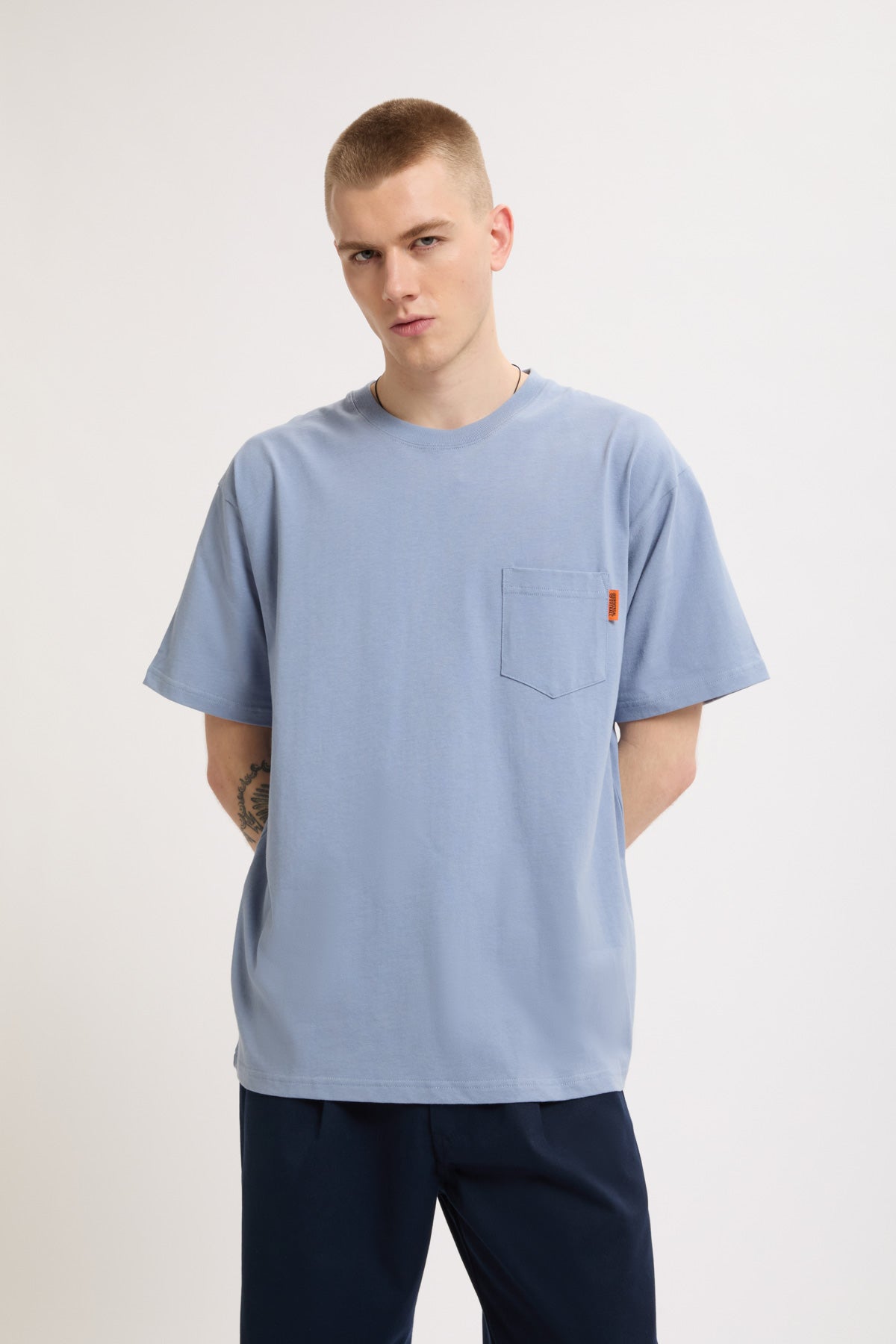 Bellissima t-shirt manica corta con taschino laterale e stampa dietro