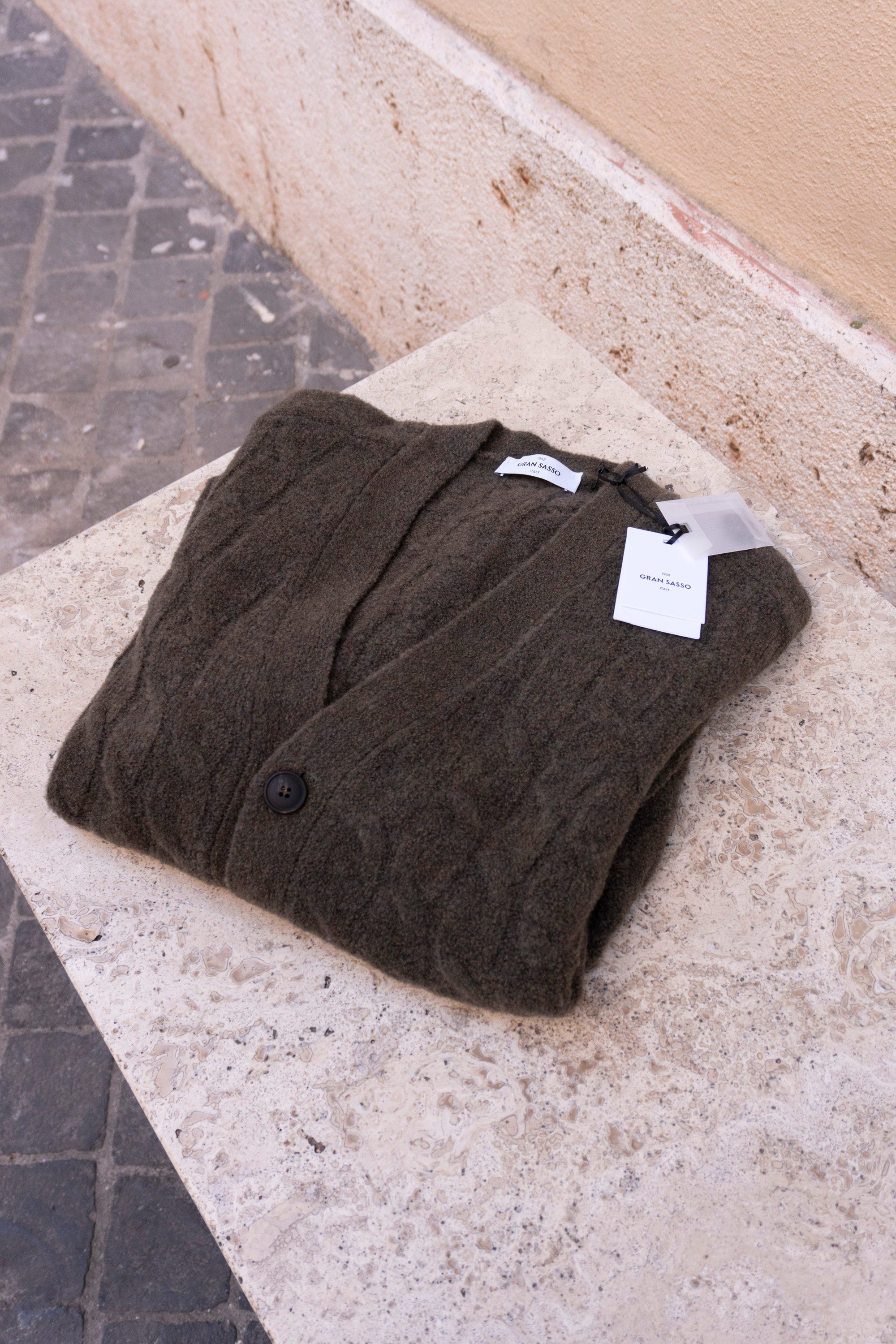Bellissimo cardigan con lavorazione a trecce,indossato sotto una giacca diventa elegantissimo.