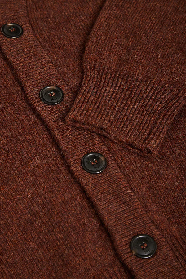 Aggiungi un tocco di eleganza senza tempo al tuo guardaroba stagionale con il nostro cardigan in lana Shetland, realizzato in 100% lana vergine. Un capo che interpreta con discrezione lo stile britannico, impreziosito dal classico scollo a V e dalla chiusura frontale con bottoni logati, perfetto equilibrio tra tradizione e modernità. Il logo Baracuta ricamato tono su tono sul petto dona un accento di heritage sobrio ma distintivo. La sua vestibilità regular, pensata per il massimo comfort, permette di indossare il capo senza problemi sia sopra una camicia che sotto alla tua giacca Baracuta preferita. Un capo essenziale e versatile, capace di adattarsi a ogni occasione. Il fascino rilassato del cardigan, elevato a icona di stile.