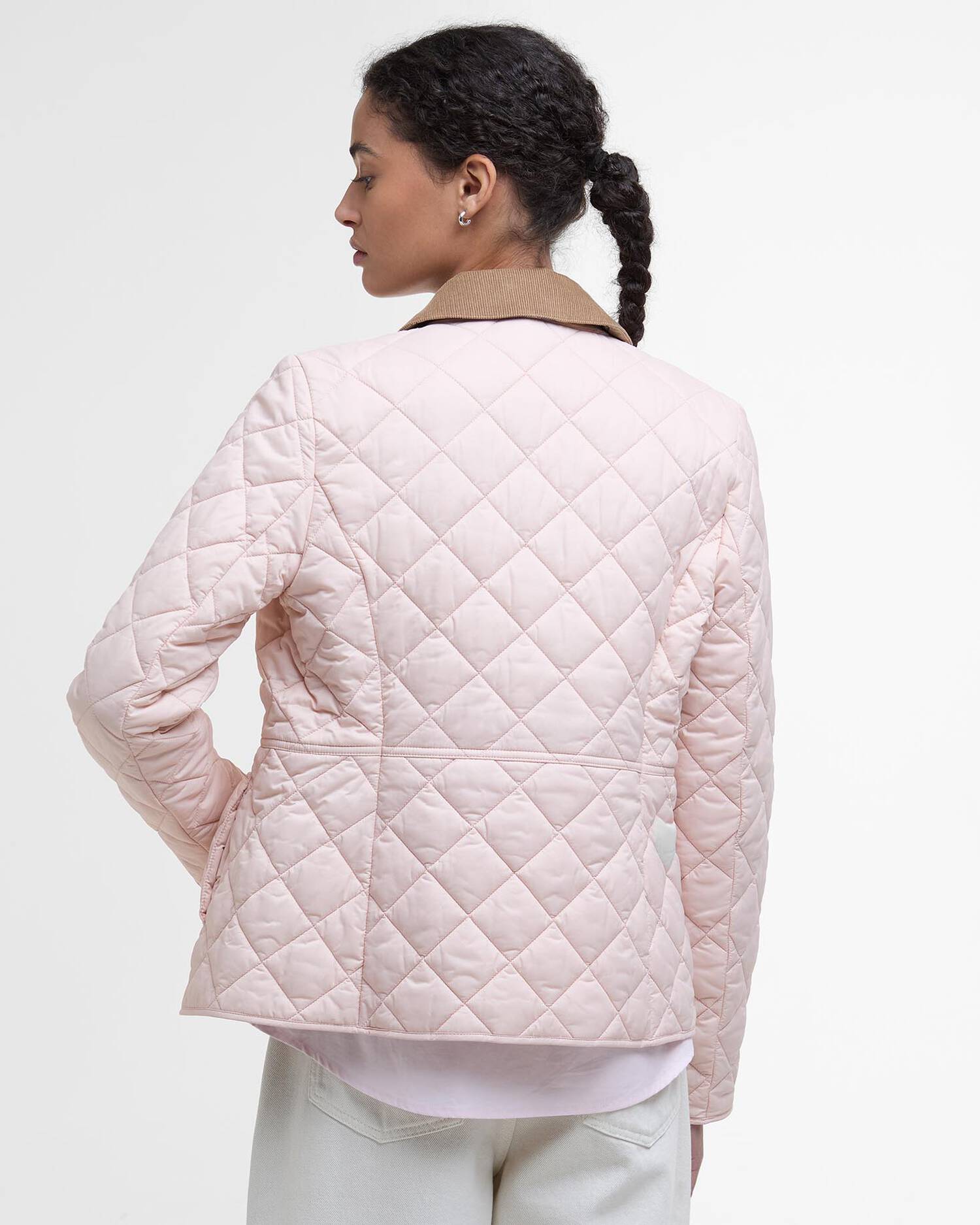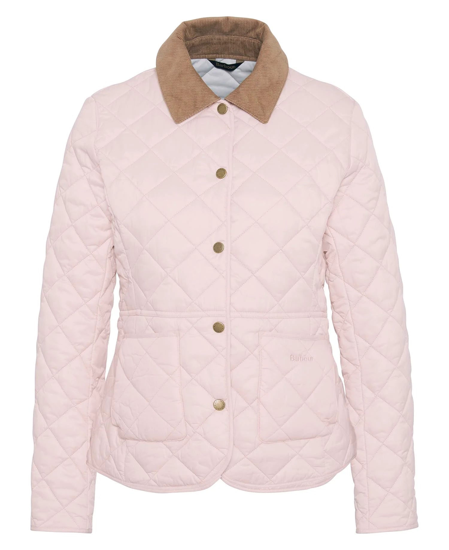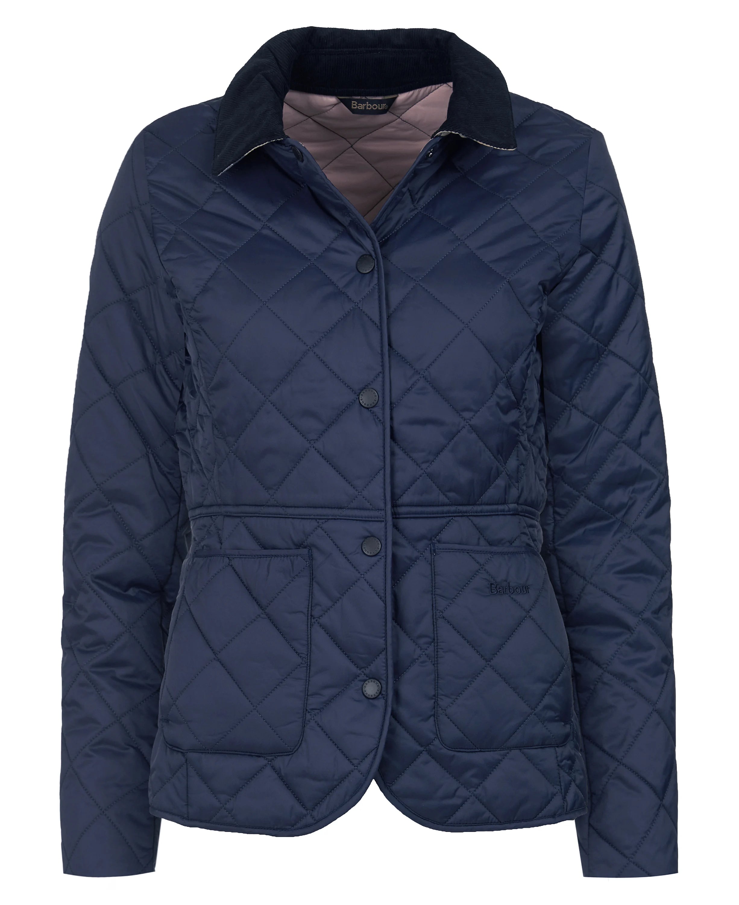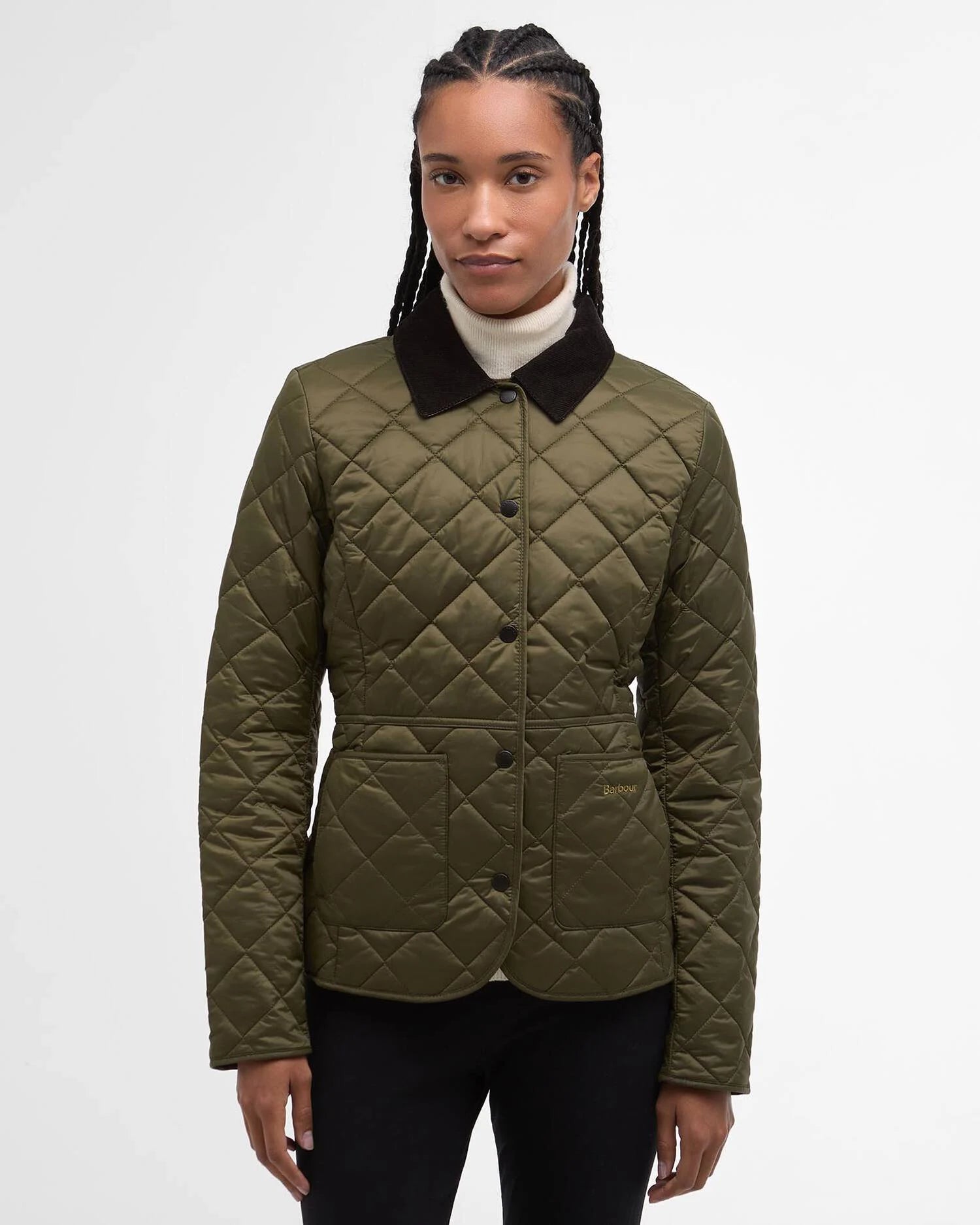 La giacca trapuntata Barbour Deveron presenta un colletto in velluto a costine e una fodera femminile a contrasto. È provvista di due pratiche tasche applicate sul davanti ed è finemente rifinita con il logo Barbour ricamato per un tocco di autenticità.