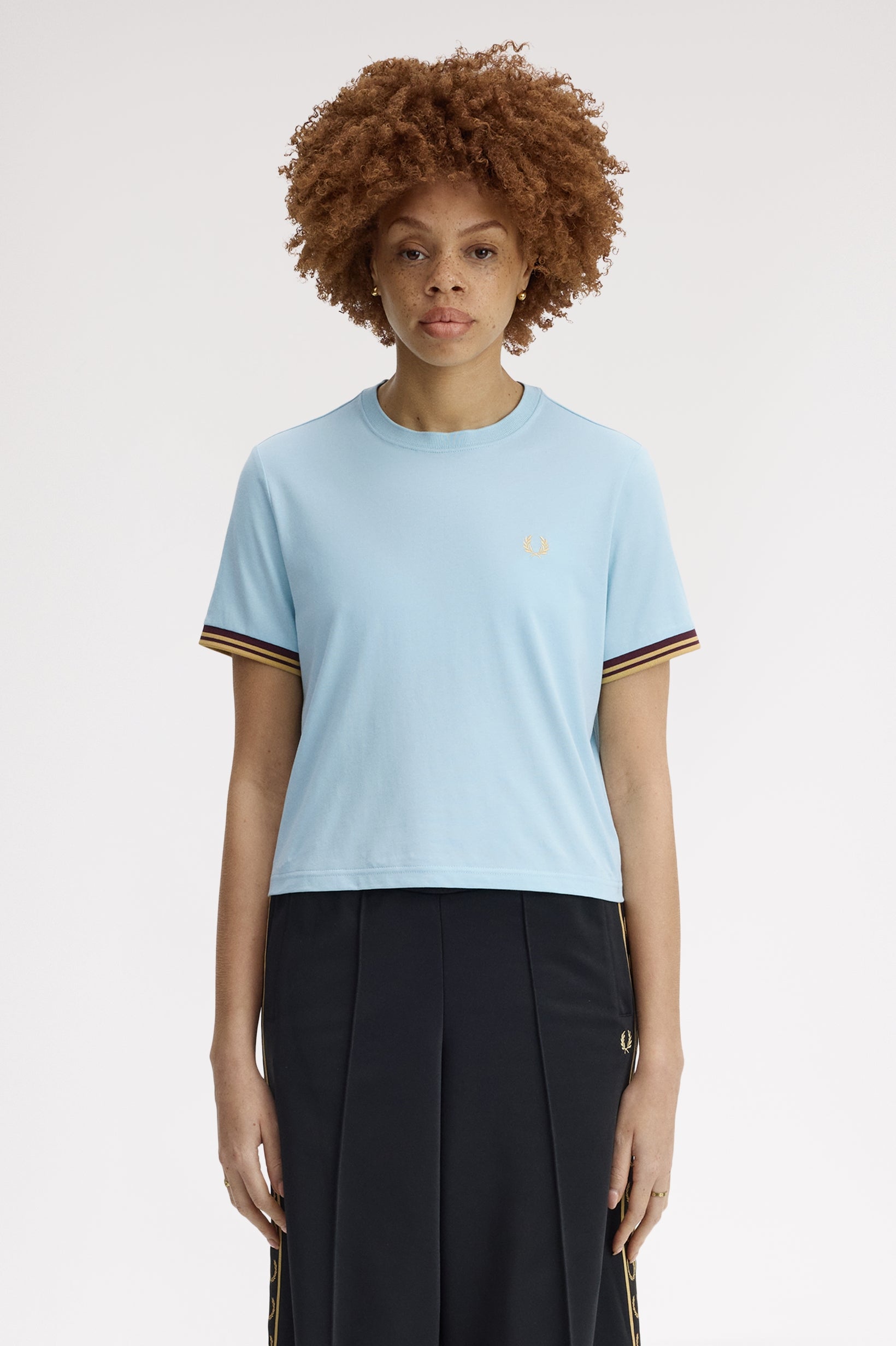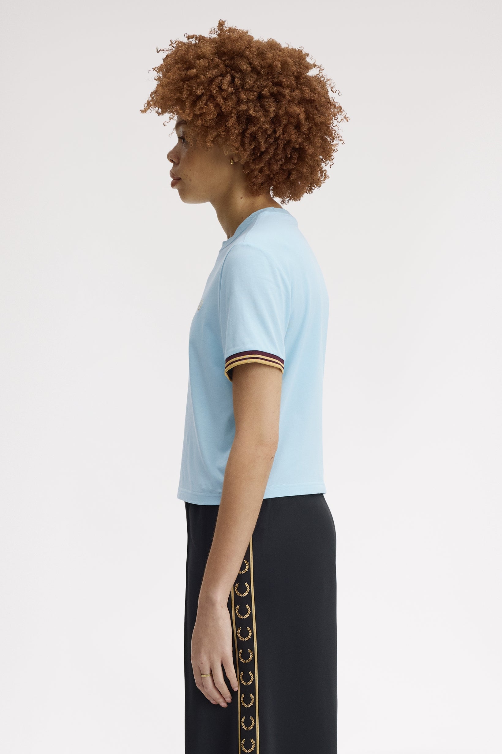 La T-shirt Croppedè un capo sportivo immediatamente riconoscibile. In questo modello dal taglio corto, siamo rimasti fedeli al look originale con una profilatura su colletto e bordo manica che accompagna la nostra corona d'alloro ricamata. Un classico Fred Perry.
